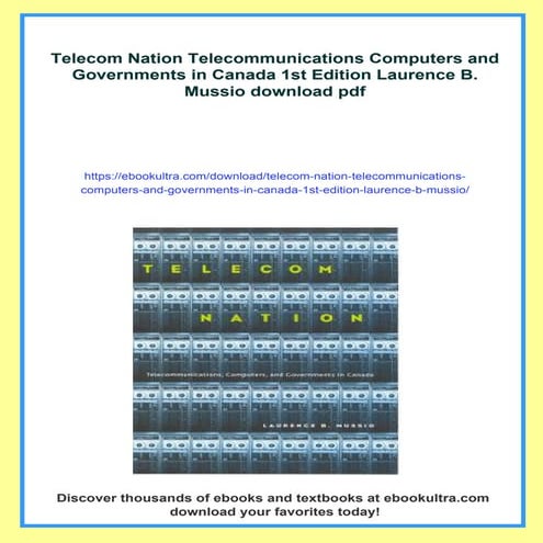 Telecom Nation Telecommunications Computers and Governments in Canada ...