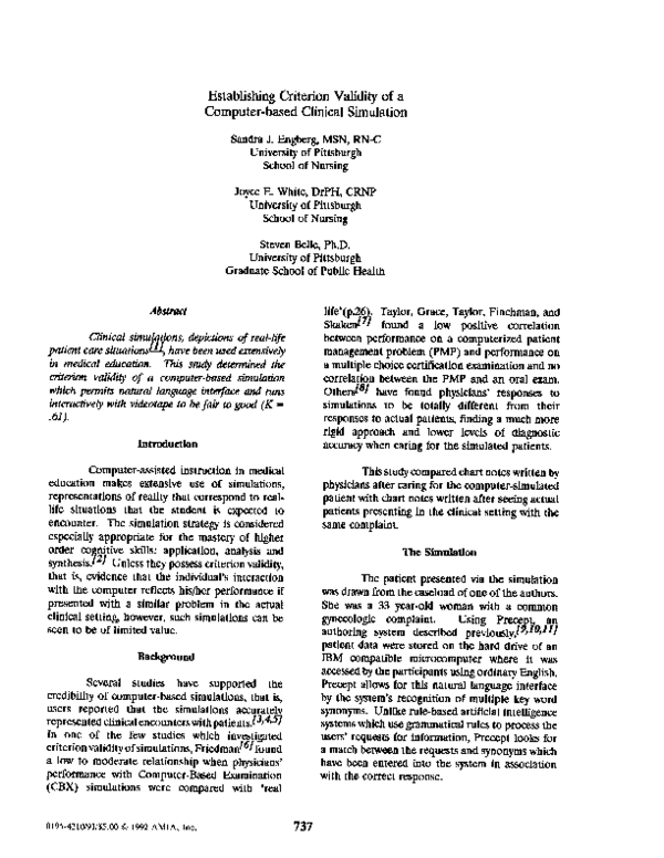(PDF) Establishing criterion validity of a computer-based clinical ...