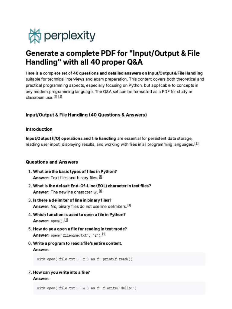 Generate a Complete PDF for _Input_Output & Fi | PDF | Computer File ...