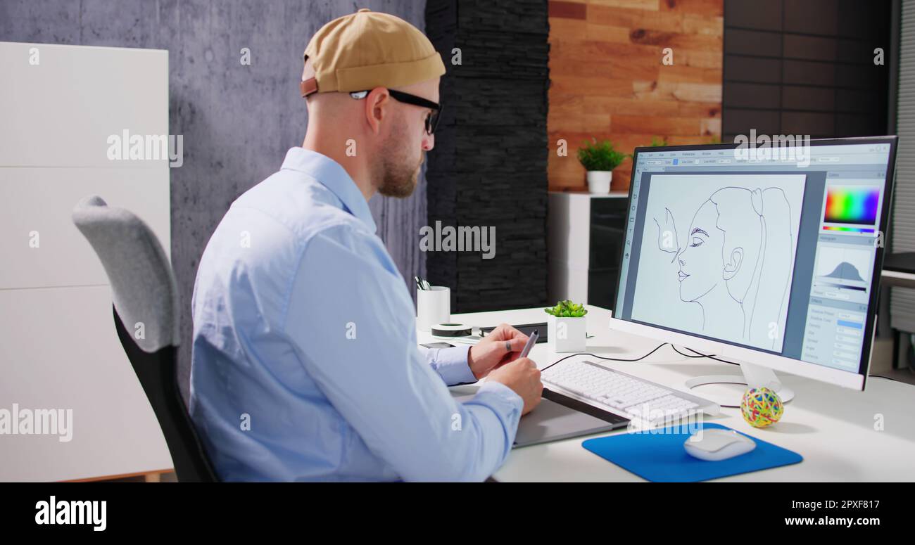 Designer Editing Photo On Computer In Office Stock Photo - Alamy