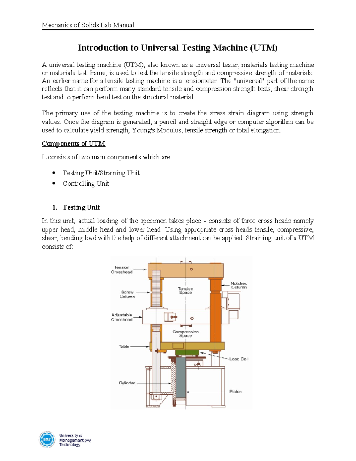 Mechanics of Solids Lab Manual: Overview of Universal Testing Machine ...