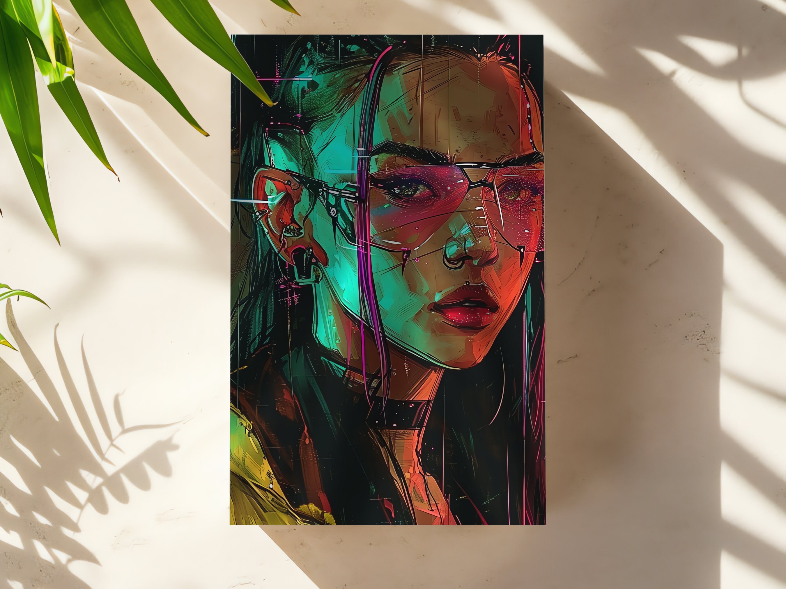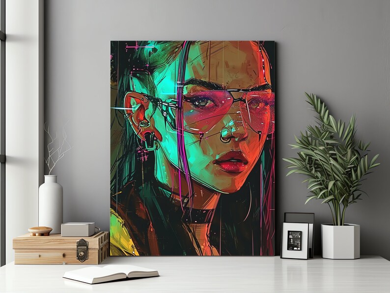 Cyberpunk Girl Portrait Canvas Stunning Digital Art Woman in Glasses ...