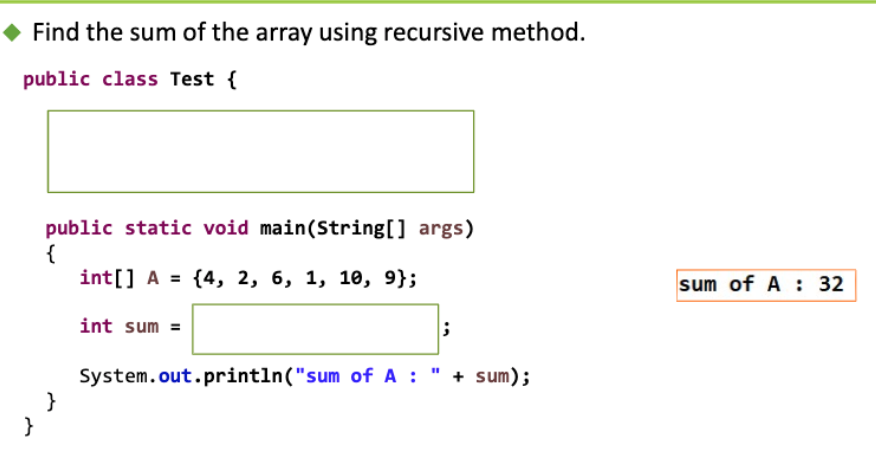 Solved Find the sum of the array using recursive method. | Chegg.com