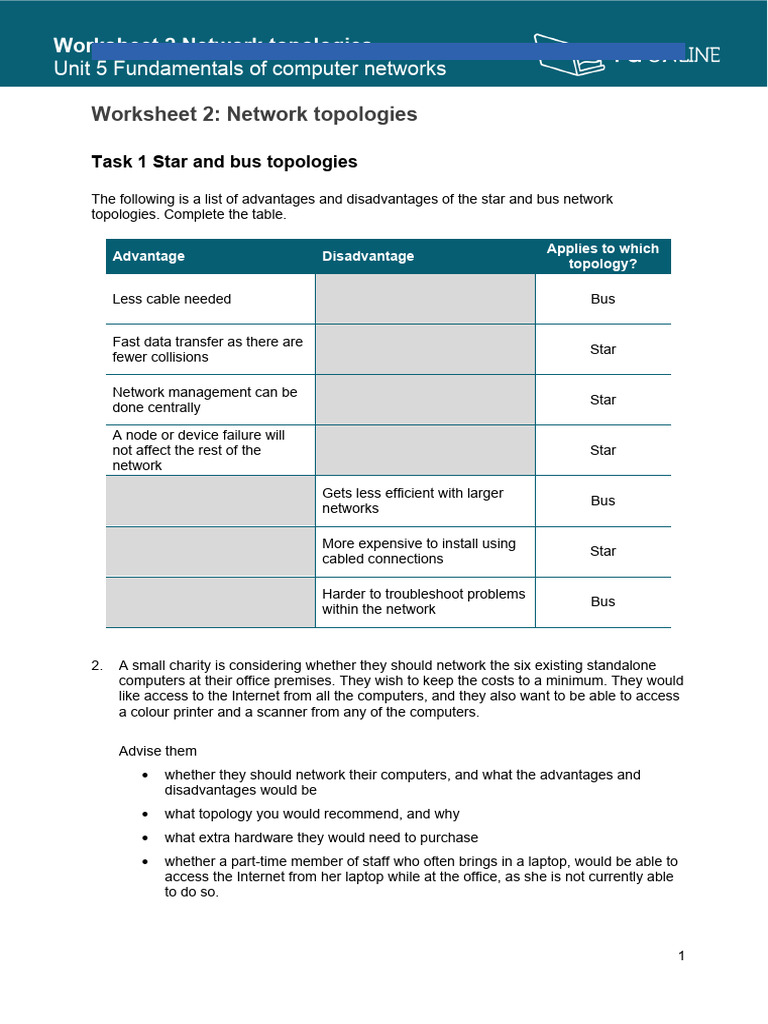 Networks Worksheet - Computing Task | PDF | Computer Network | Network ...