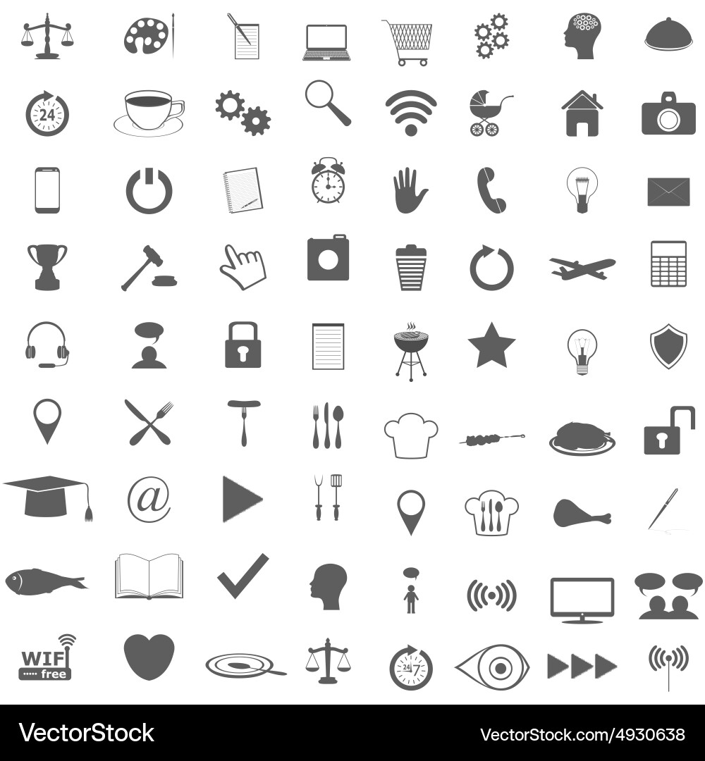 A Collection Of 100 Standard And Versatile Icons In Flat Colors On An ...