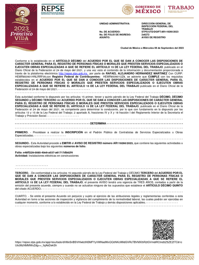 FORMATO 17 Aviso de Registro REPSE | PDF | Gobierno | Justicia