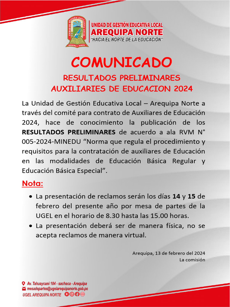 COMUNICADO Resultados Preliminares Auxiliares | PDF | Etapas educativas ...