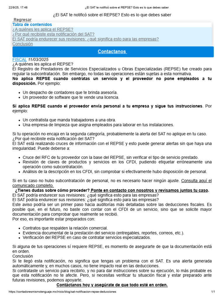 REPSE y deducciones fiscales: nuevos comunicados del SAT 2025 - ContadorMx