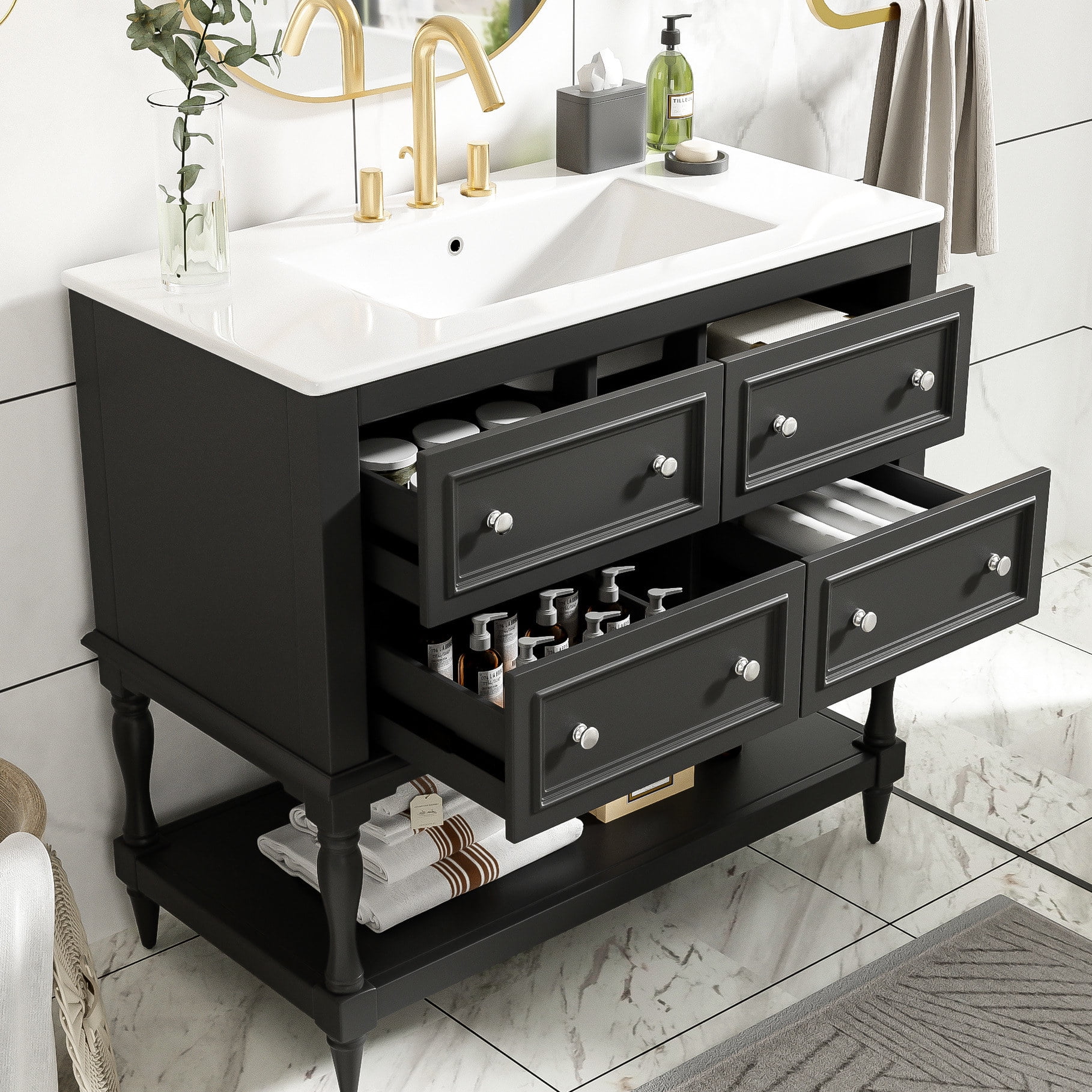 Black Ceramic Sink Vanity+Overflow Protection"-"Bathroom Safety+Prevent ...