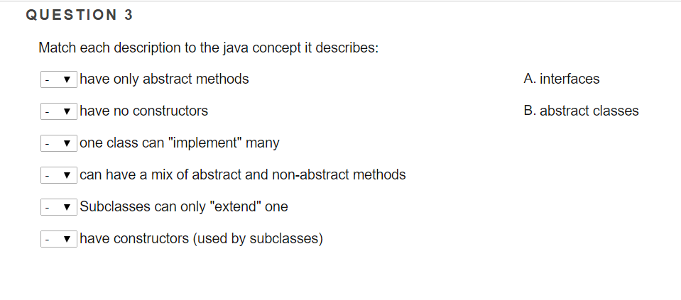 Solved Match each description to the java concept it | Chegg.com