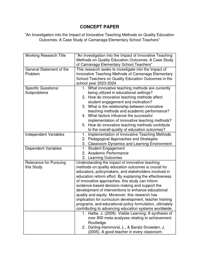 A SAMPLE CONCEPT PAPER For An ACADEMIC RESEARCH | PDF | Teachers ...