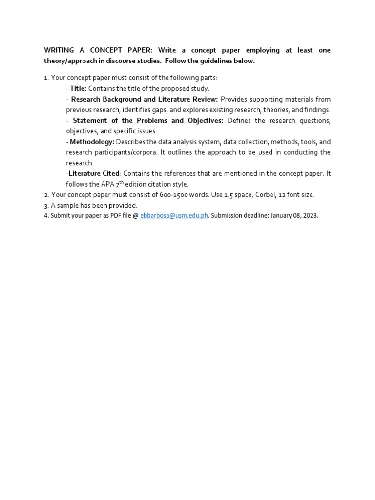 Writing a Concept Paper: Essential Notes and Guidelines - Studocu