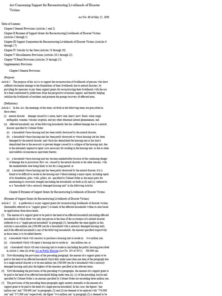Japan Act Concerning Support | PDF
