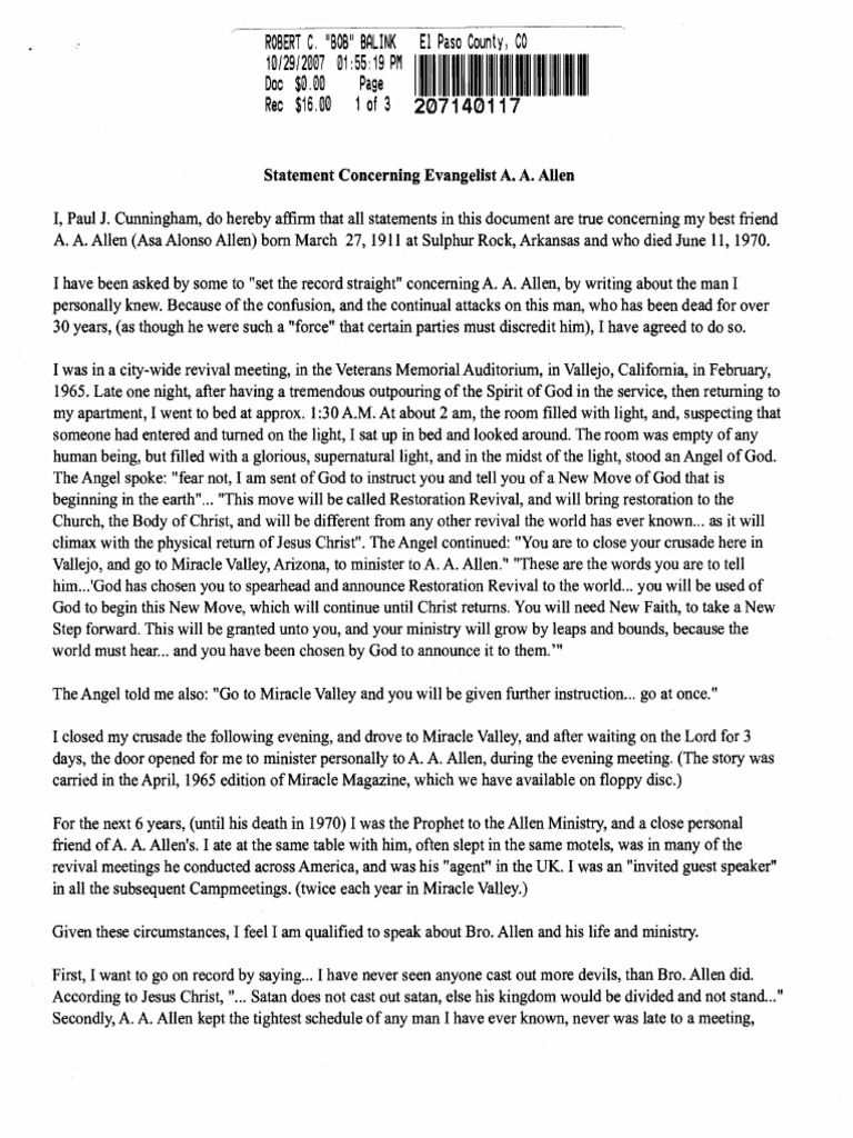 Statement Concerning A A Allen | PDF