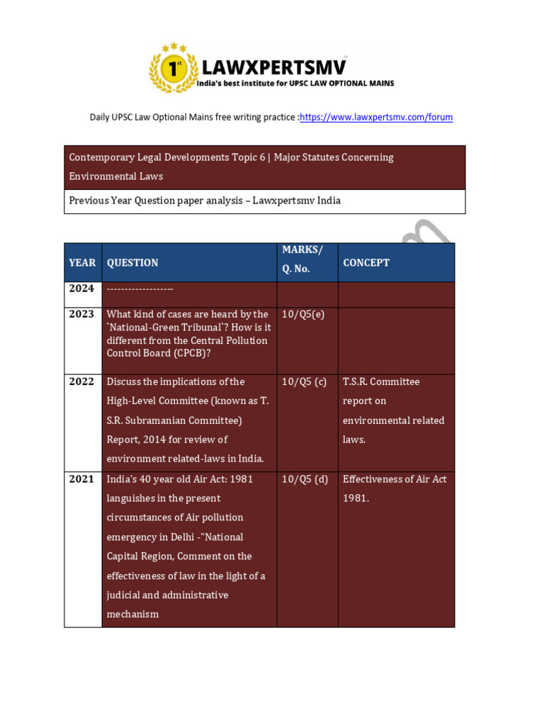 UPSC Law Mains: Environmental Laws Guide | PDF | Environmental Law ...