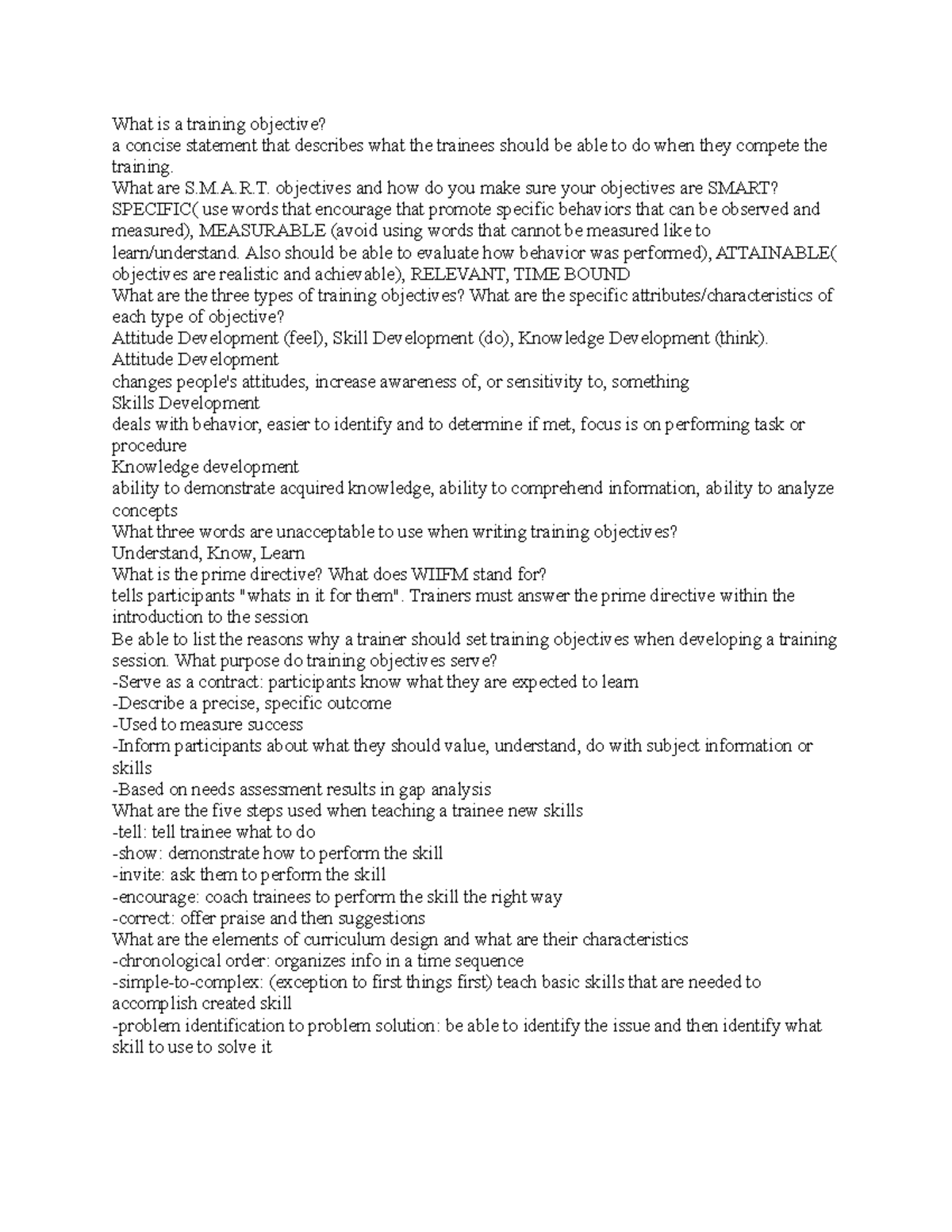 COM 4510 - COM 4150 - What is a training objective? a concise statement ...