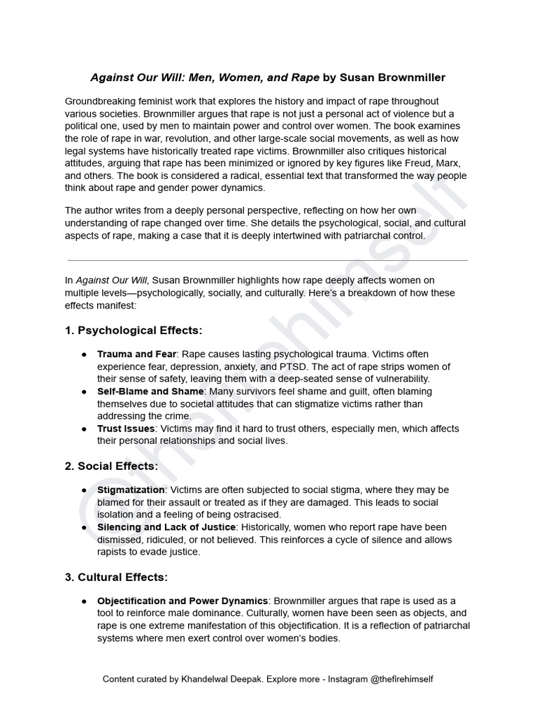 Concised Content For Against Our Will - Men, Women, and Rape by Susan ...