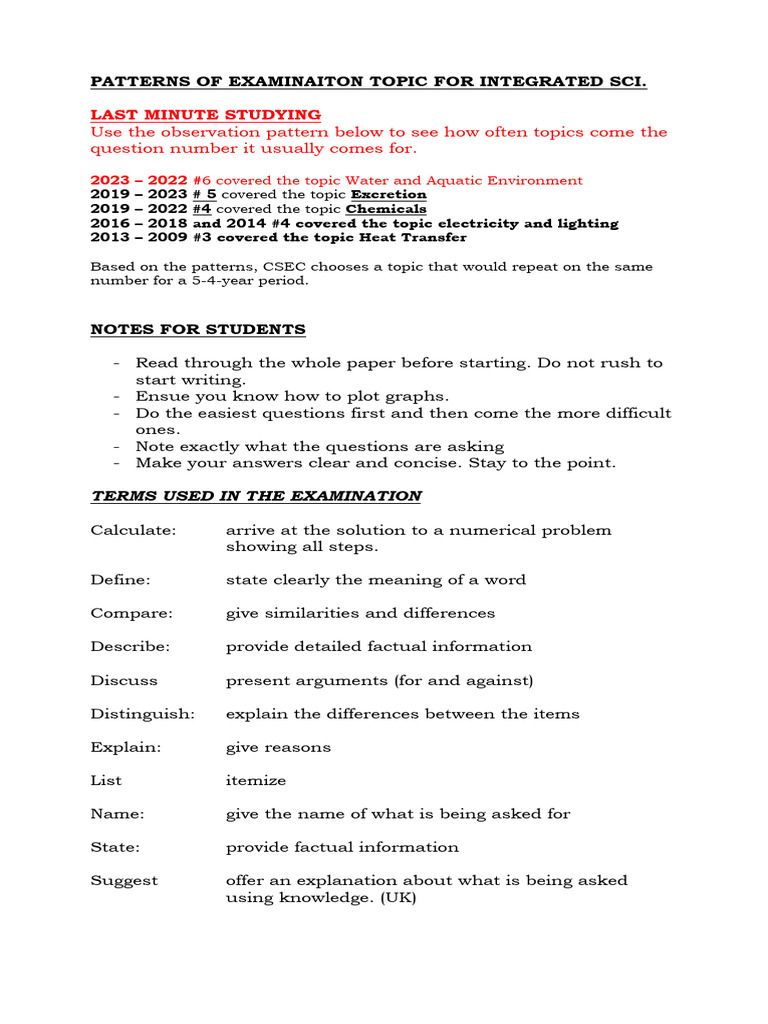 CONCISED CSEC REVISION - Integrated Science | PDF | Water | Metals