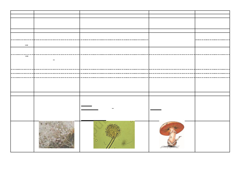 Fungi Classes Concised Table | PDF | Fungus | Organisms