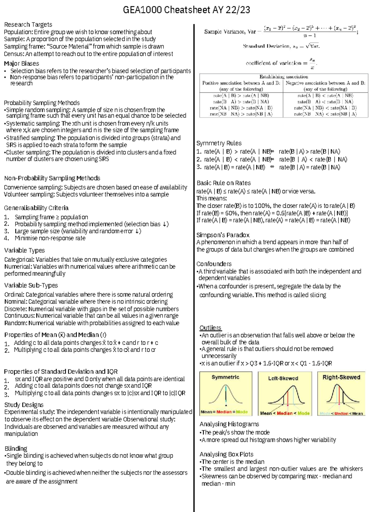 Gea-cheatsheet - concised formulas - GEA1000 Cheatsheet AY 22/ Major ...