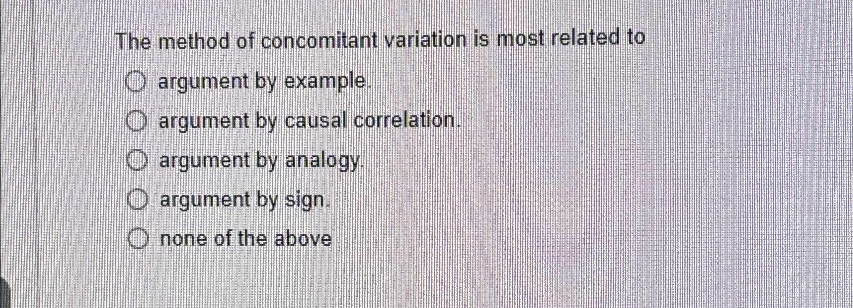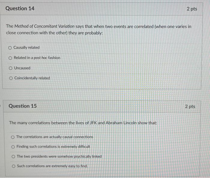 Solved Question 14 2 pts The Method of Concomitant Variation | Chegg.com