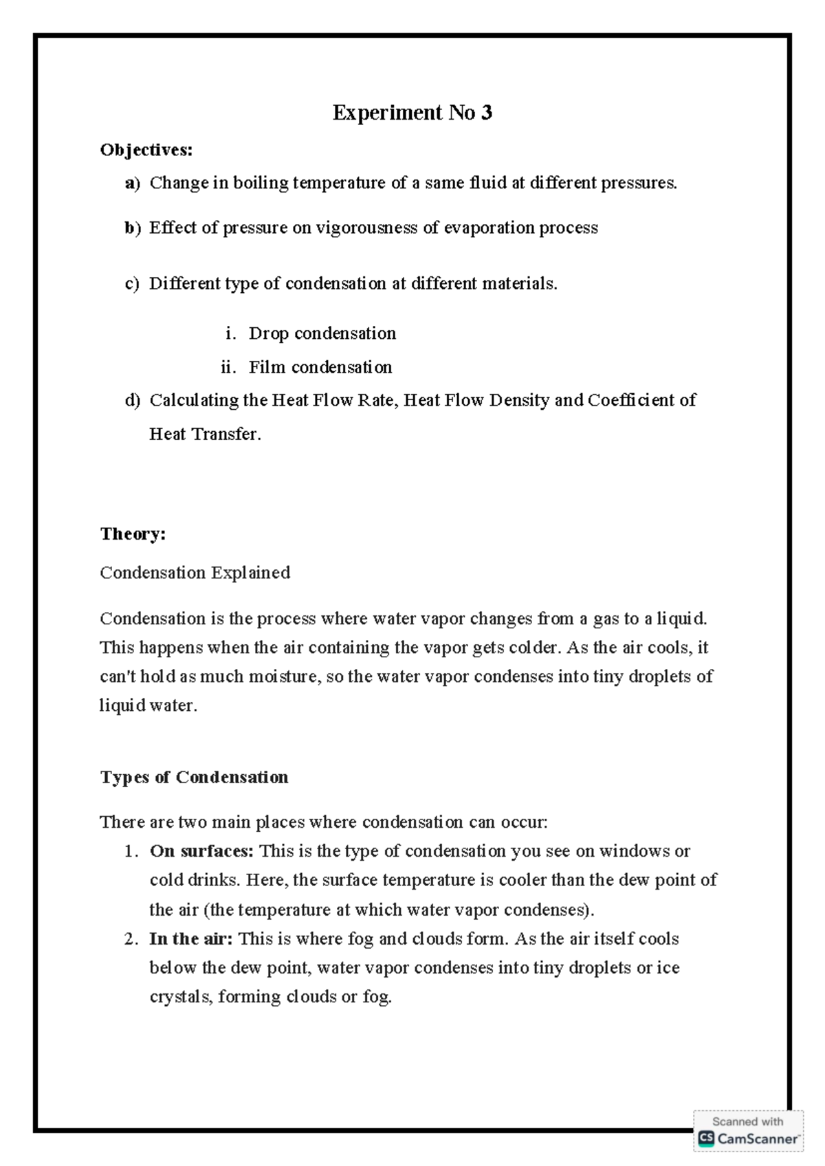 Condensation Unit Lab Report: Experiment No 3 on Heat Transfer ...