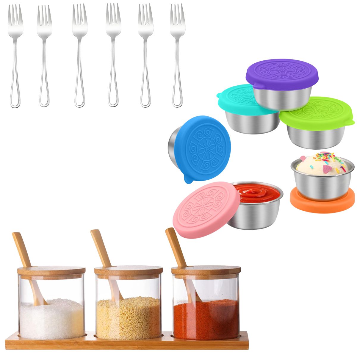 glass Condiment Jars set $15+ | 6-pk kids SS forks $2+ | 6-pk SS ...