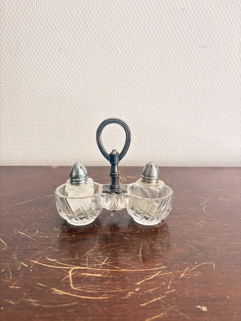 Ancien Porte Condiment Saleron Salière Poivrier Métal Argenté ...