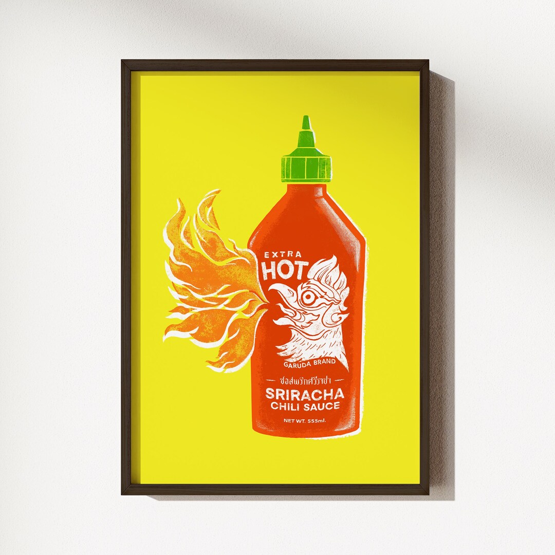 Sriracha Hot Sauce Art Print - Chili Sauce Illustration - Kitchen Food ...