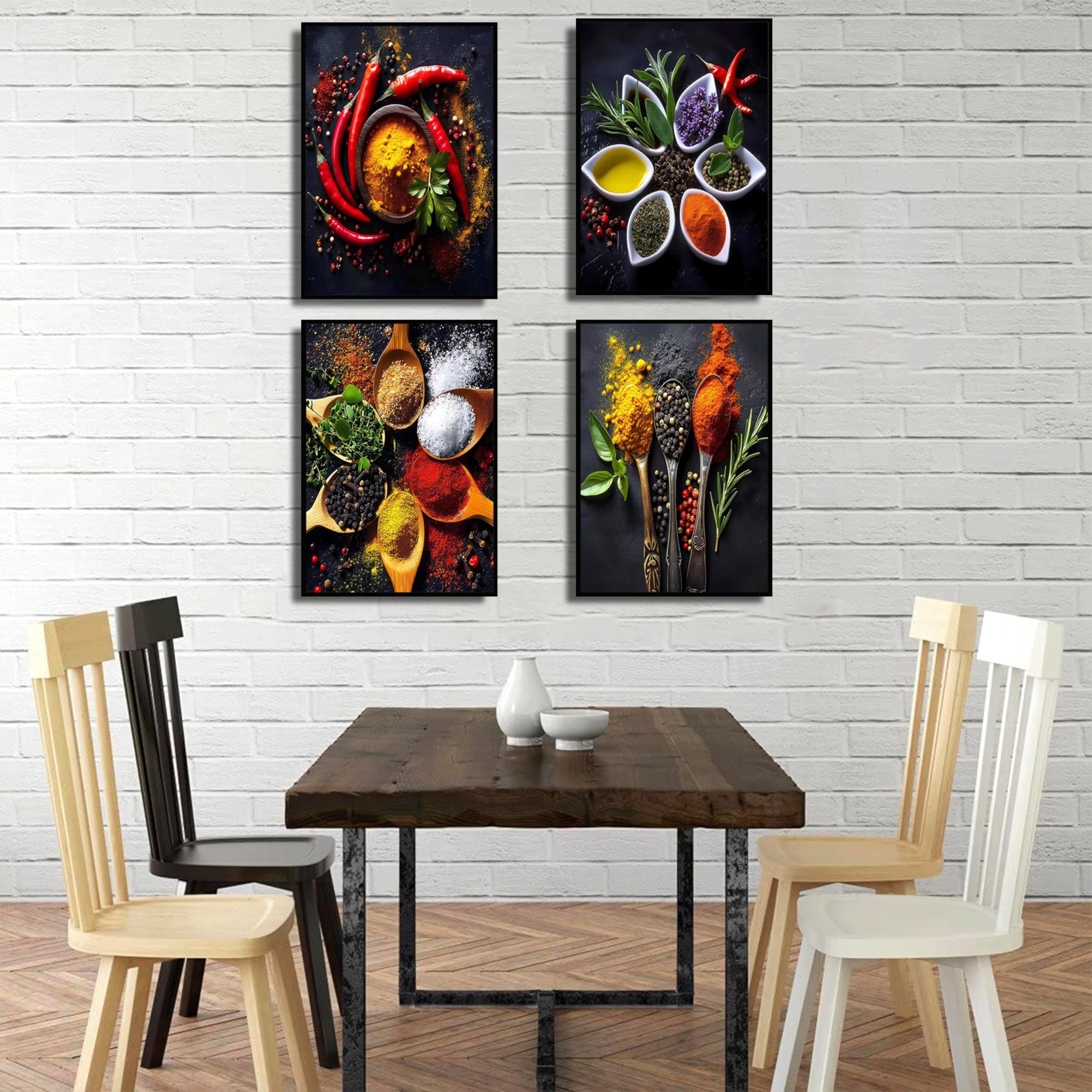 Amazon.com: 4pcs Kitchen Wall Art Colorful Spices And Spoon Vintage ...