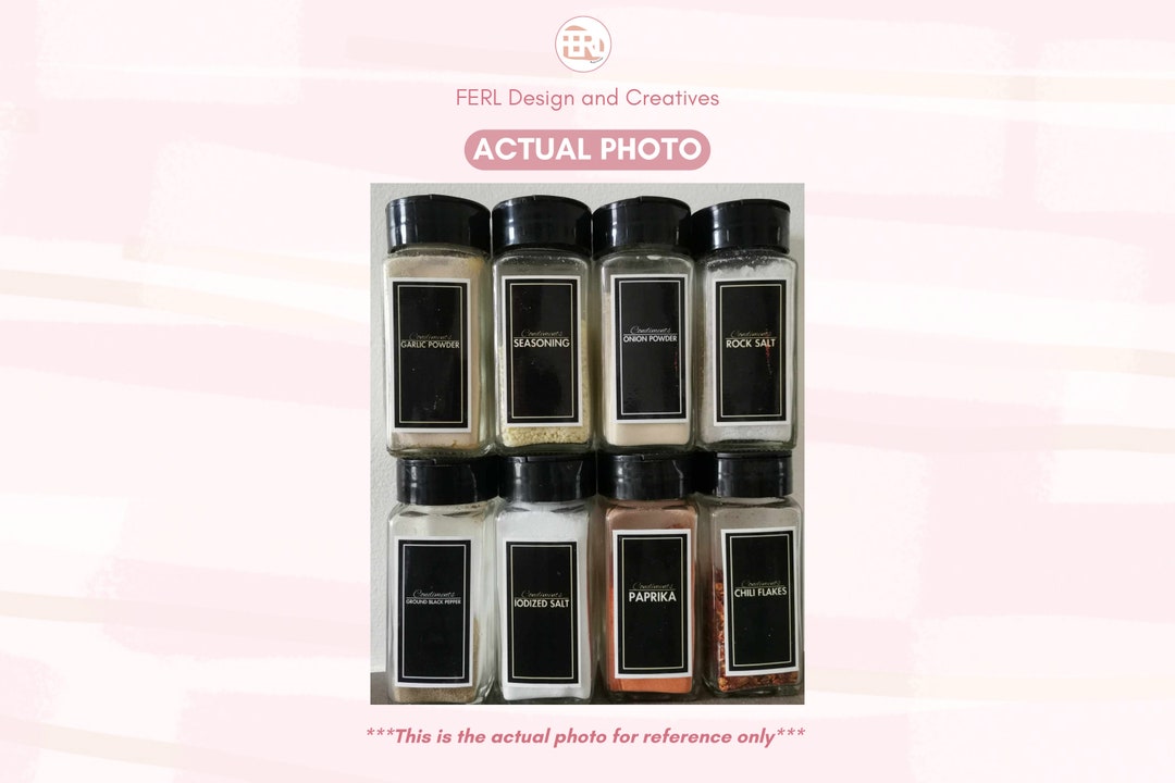 Pantry kitchen seasoning label sticker kit set collection in elegant ...