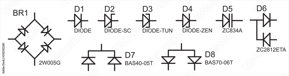 Vector icons of electronic components of the electrical circuit. Diode ...