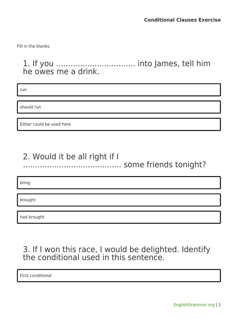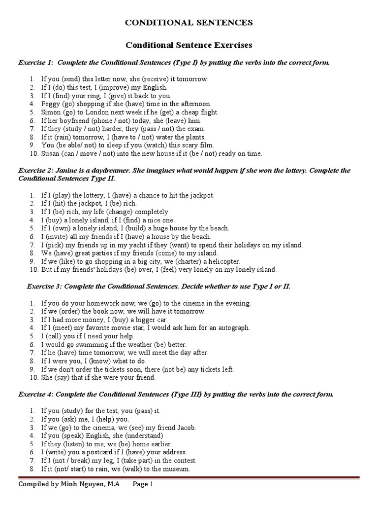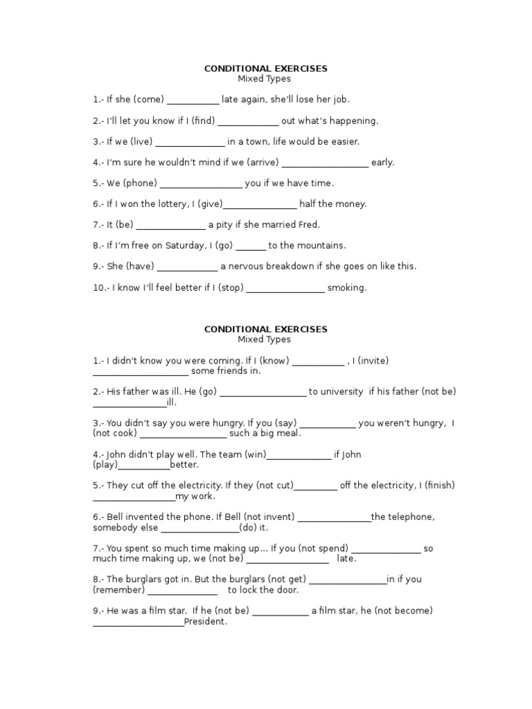 English Conditional Exercises | PDF | Sentence (Linguistics ...