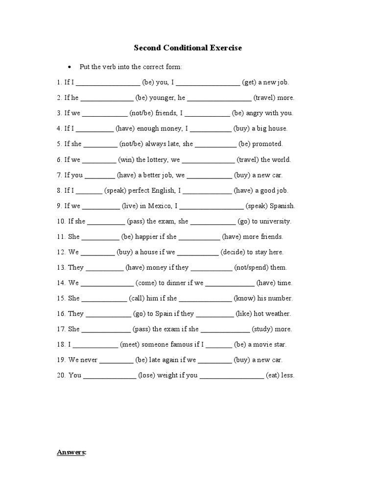 Second Conditional Exercises PDF | PDF