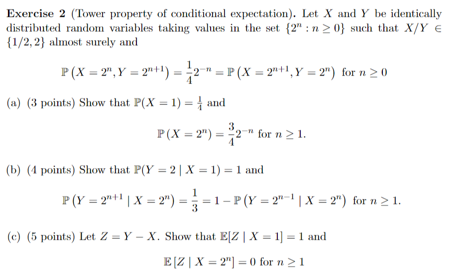 Solved Exercise 2 (Tower property of conditional | Chegg.com
