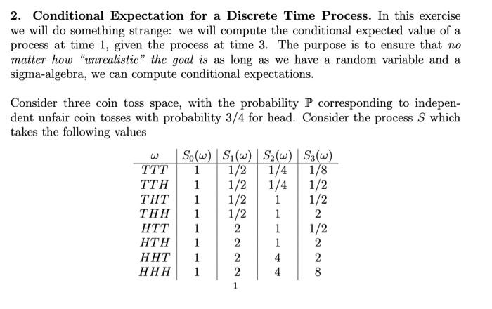 Solved 2. Conditional Expectation for a Discrete Time | Chegg.com