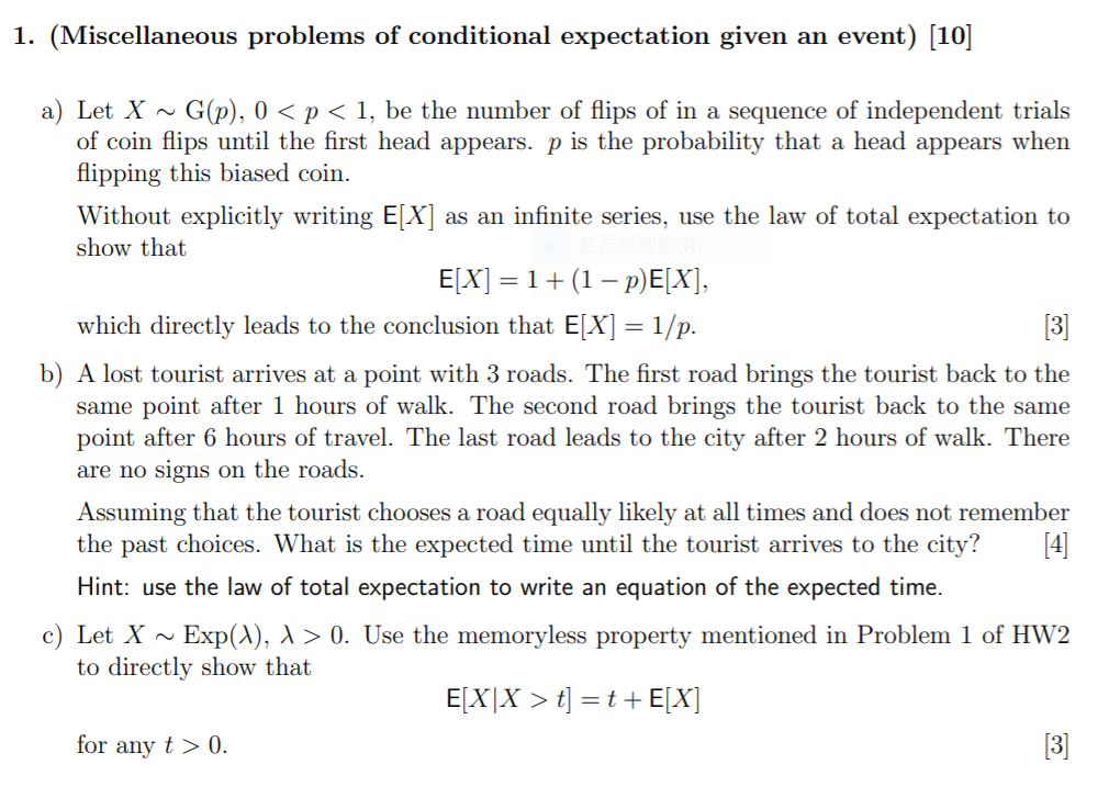 Solved 1. (Miscellaneous problems of conditional expectation | Chegg.com