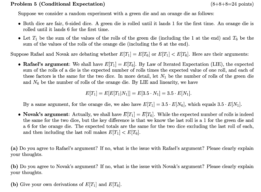 Solved Problem 5 (Conditional Expectation) (8+8+8=24 points | Chegg.com