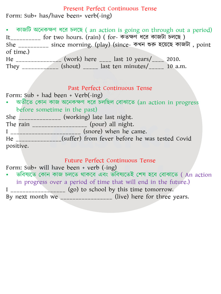 Past perfect continuous tense with examples formula and exercise – Artofit