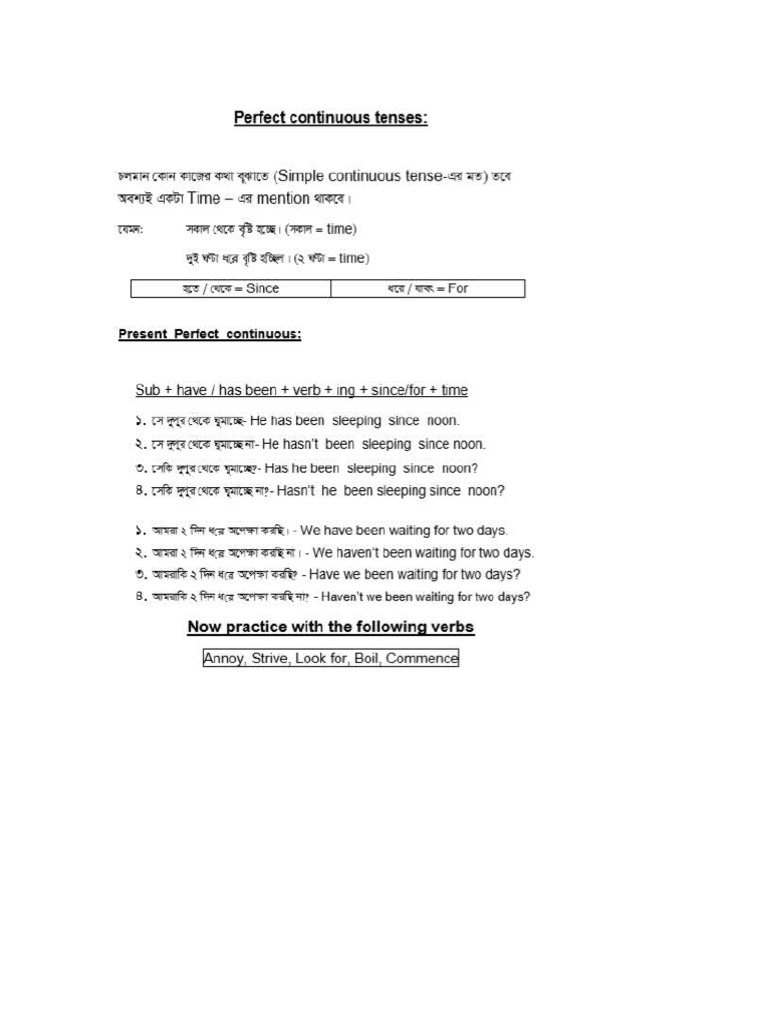 Perfect Continuous Tenses Example | PDF