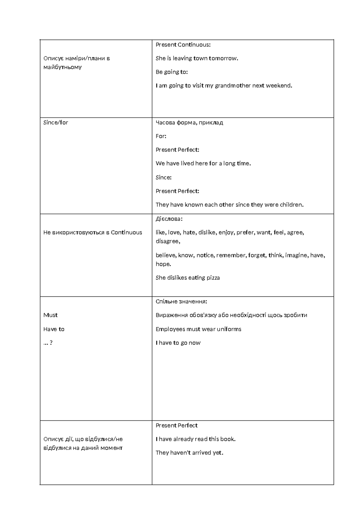 Grammar Chart-1: Present Continuous, Perfect, and Conditional Tenses ...