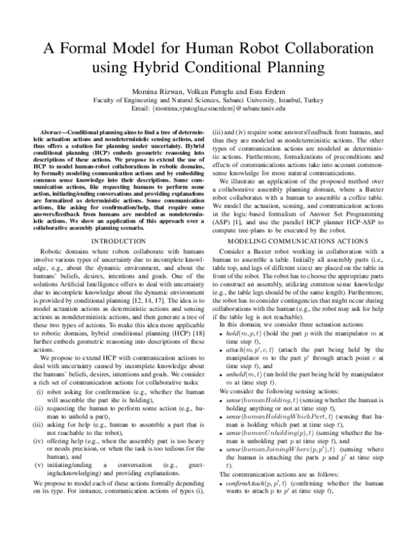 (PDF) A Formal Model for Human Robot Collaboration using Hybrid ...