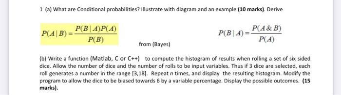 Solved 1 (a) What are Conditional probabilities? Illustrate | Chegg.com