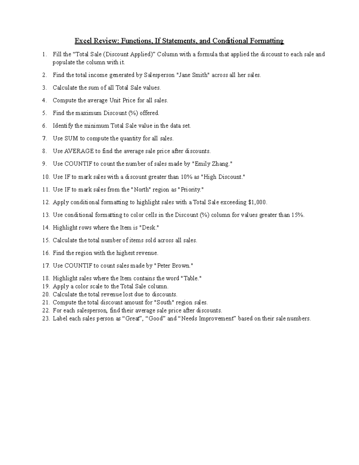 All+Excel+Practice+Problems - Excel Review: Functions, If Statements ...