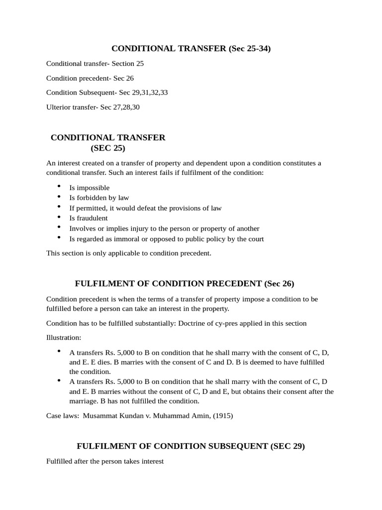 Conditional Transfer Under Transfer of Property Act | PDF | Legal ...
