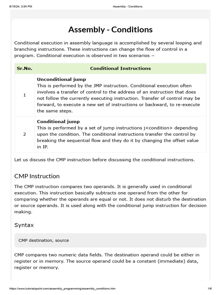 Assembly - Conditions | PDF | Computer Science | Computer Programming