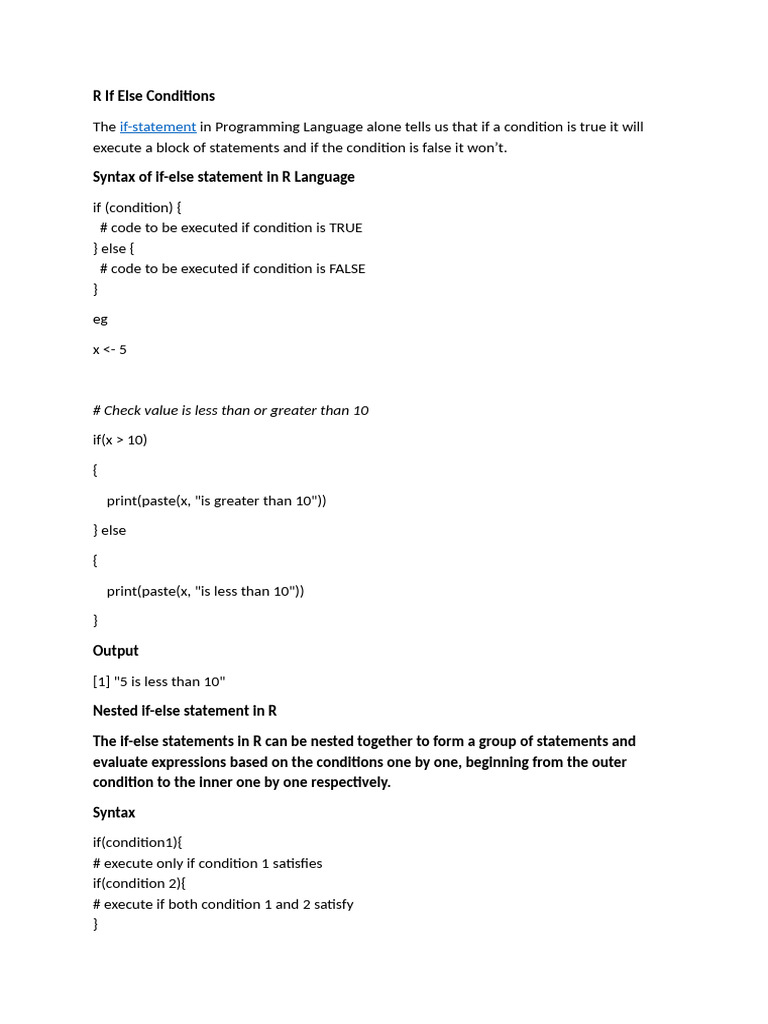 R if Else Conditions | PDF | Control Flow | Computing