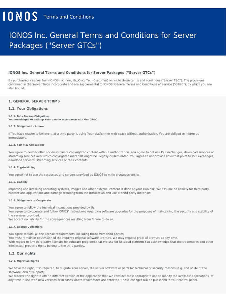 General Terms and Conditions - Server | PDF | Cloud Computing | Backup