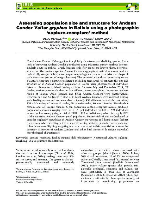 Assessing population size and structure for Andean Condor Vultur ...