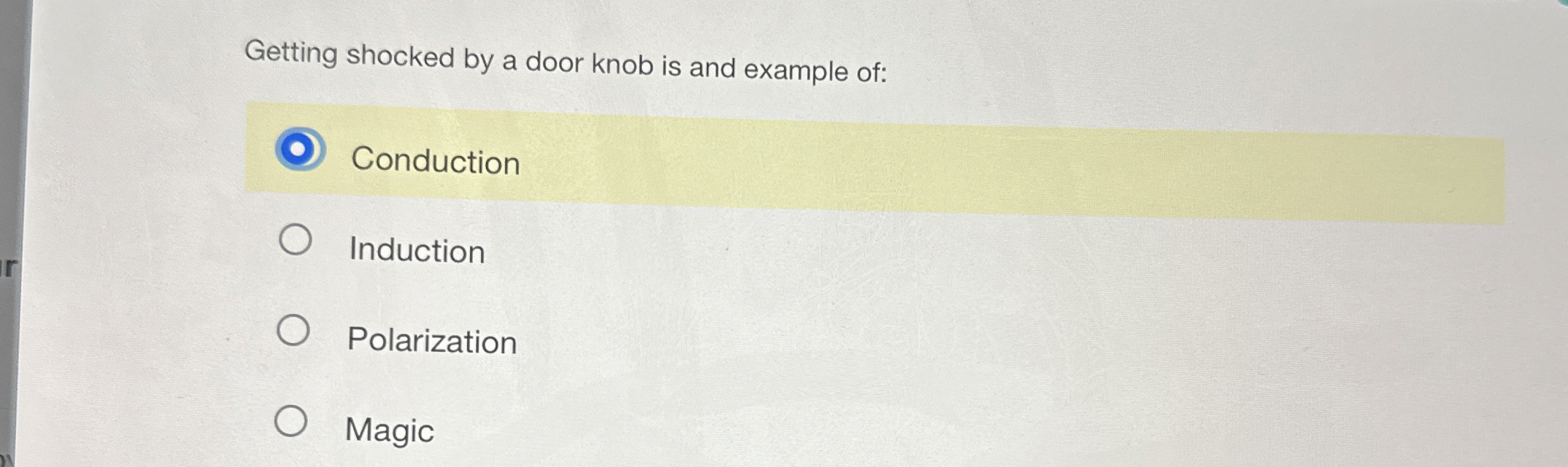 Solved Getting shocked by a door knob is and example | Chegg.com